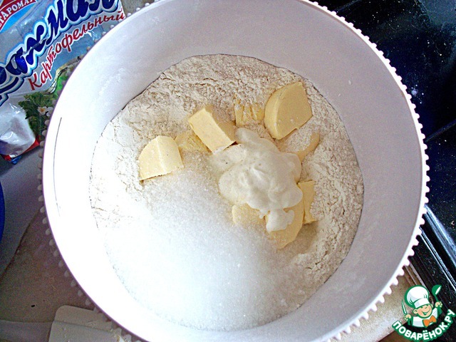 Муку, холодное сливочное масло (порезаное кубиками), сахар, сметану, соль перебить миксером, на первой скорости. (или перетереть вилкой)