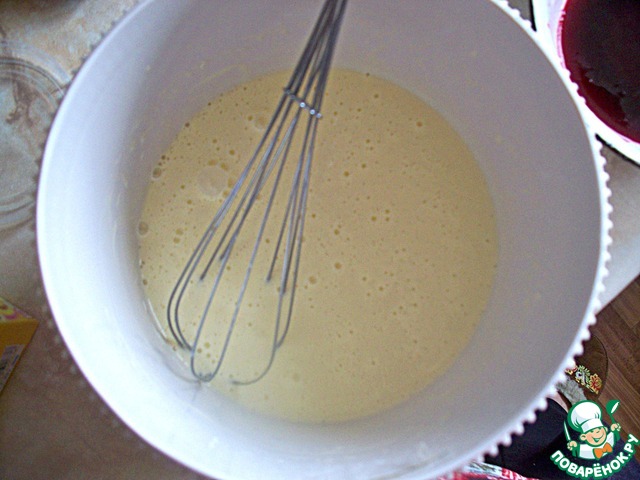 Тесто готово. Выкладываем вишни (сок с вишни отжать, он нам еще понадобится)