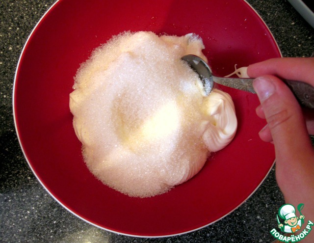 А после мы добавляем их к сметане с сахаром.