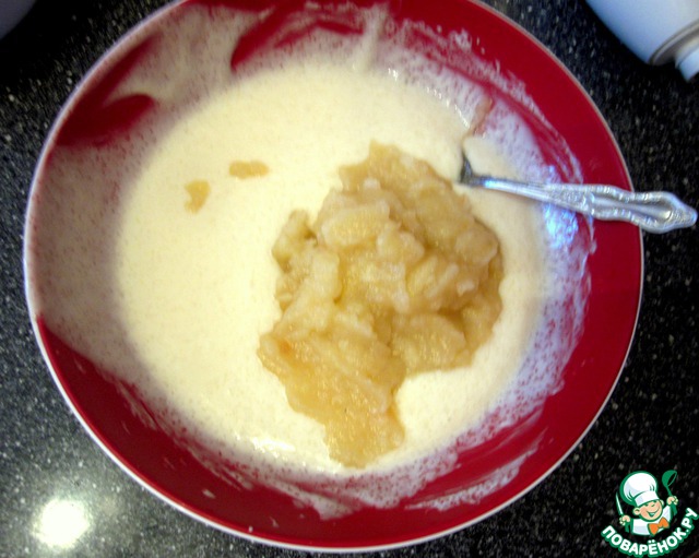 К сметане с сахаром добавляем яблочное "недопюре" (ну, в моем случае).