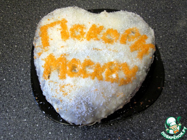 Последний я пропитала остатками яблочного крема и оставила на нем напутствие кокосовой стружкой.
