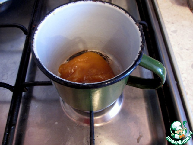 А вот дальше у меня возникли некоторые сложности. Мед отправляем в кастрюльку и помещаем на плиту для разогревания.