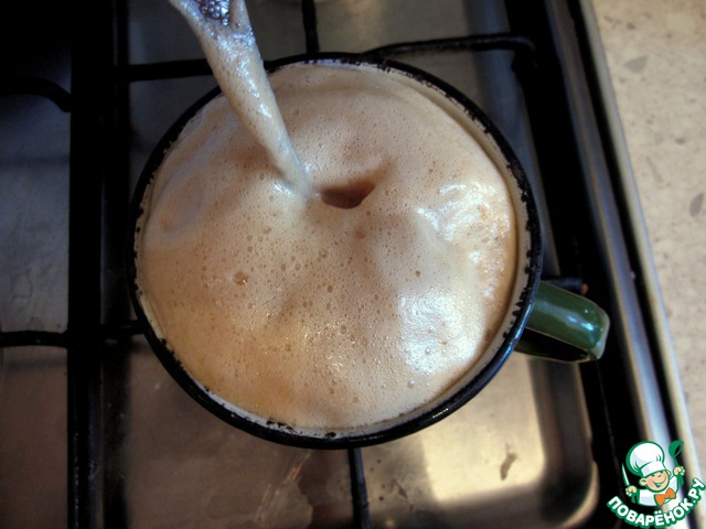 Добавляем гашеную соду ( мне, кстати, показалось, что ее многовато). Внимание: кастрюля должна быть "просторной" и с высокими стенками, иначе под влиянием соды медовая "шапка" захочет покинуть пределы емкости!