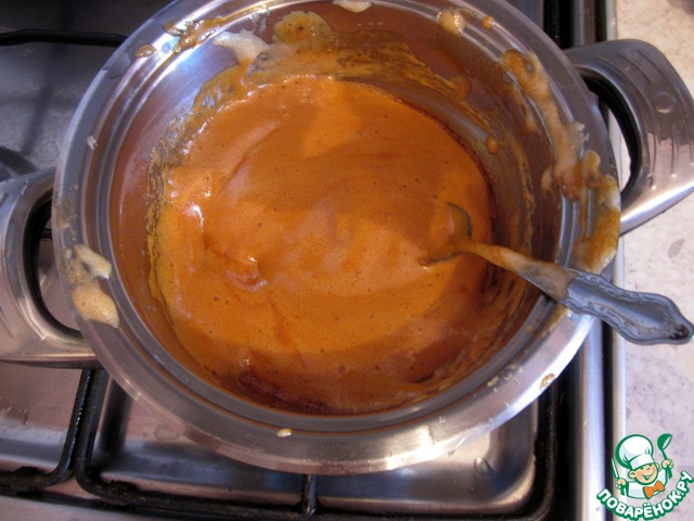 Пришлось срочно искать другую кастрюльку. Пока возилась, не уследила за медово-содовой смесью и передержала. Нам нужно добиться лишь светло-коричневых разводов, а не сияния бронзы :D Ну что ж, урок усвоен.