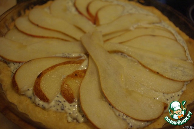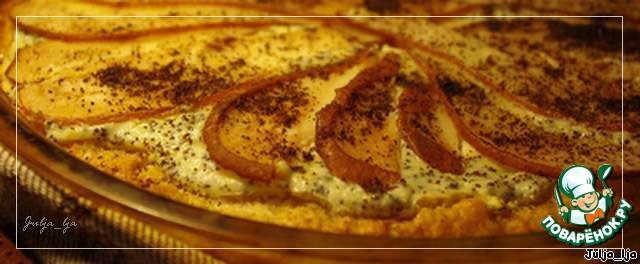 | Мягкая, рассыпчатая основа, с лeгким медовым ароматом. Нежная творожная начинка, с, едва заметным лимонным ароматом, с приятно похрустывающим маком. И сочные груши.. Ну а в довершение всего, мне очень захотелось посыпать всe кофе, уж очень нравится мне сочетание творога, груш и кофе. |