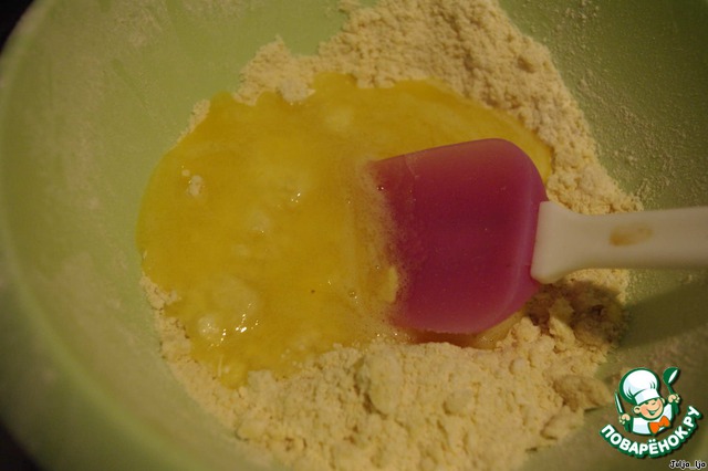 Добавляем яичную смесь в тесто. Перемешиваем.