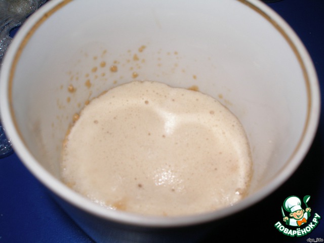 Для начала делаем опару. Перед тем, как дрожжи закладывать в опару, размешиваем их в тёплом молоке (1-2 ч.л.) и щепотке сахара.
