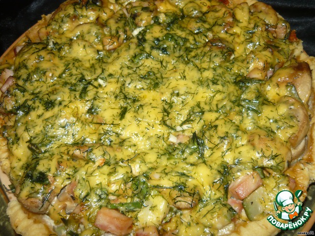 Открытый пирог с шампиньонами