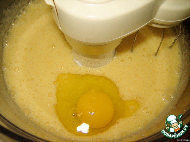 Затем добавляем по одному яйцу, продолжая размешивать.