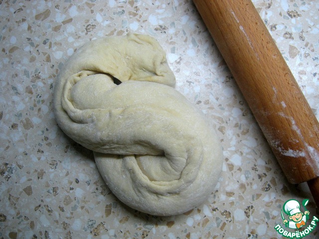 Аккуратно сформировать рулет, соединить концы рулета и сформировать восьмёрку.