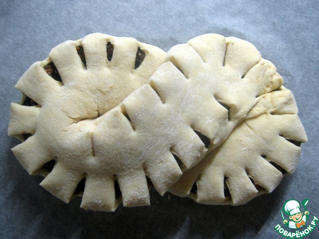 Положить на противень швом вниз, сделать ножницами аккуратные надрезы по краям ленты, накрыть и оставить на расстойку 15 минут. Тем временем разогреть духовку до 190 градусов.