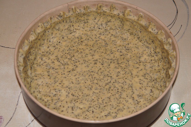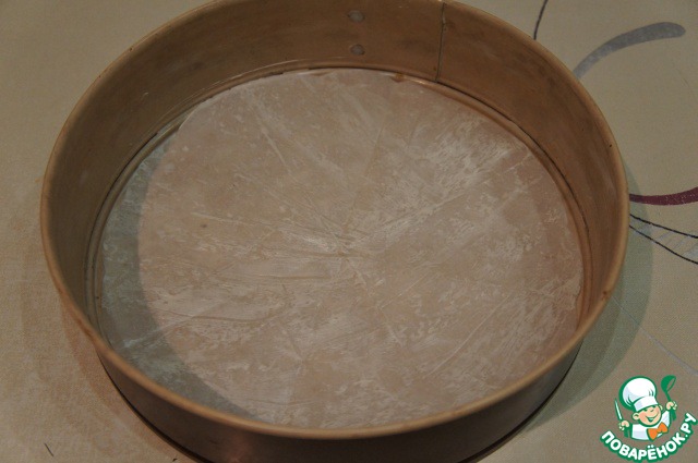 Тесто раскатать до толщины 4 мм (я обычно слегка раскатываю тесто, а потом просто разминаю его руками). Выложить им дно и стенки формы диаметром 24 см.