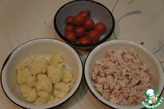 Брокколи или цветную капусту разделить на средние соцветия и бланшировать в кипящей воде черешками вниз 1 минуту. Воду слить. Накрыть крышкой, чтобы дошли на пару.