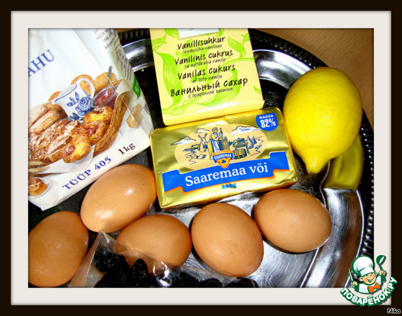 Мука, яйца, сливочное масло, ванильный сахар, лимон для цедры.