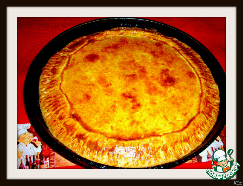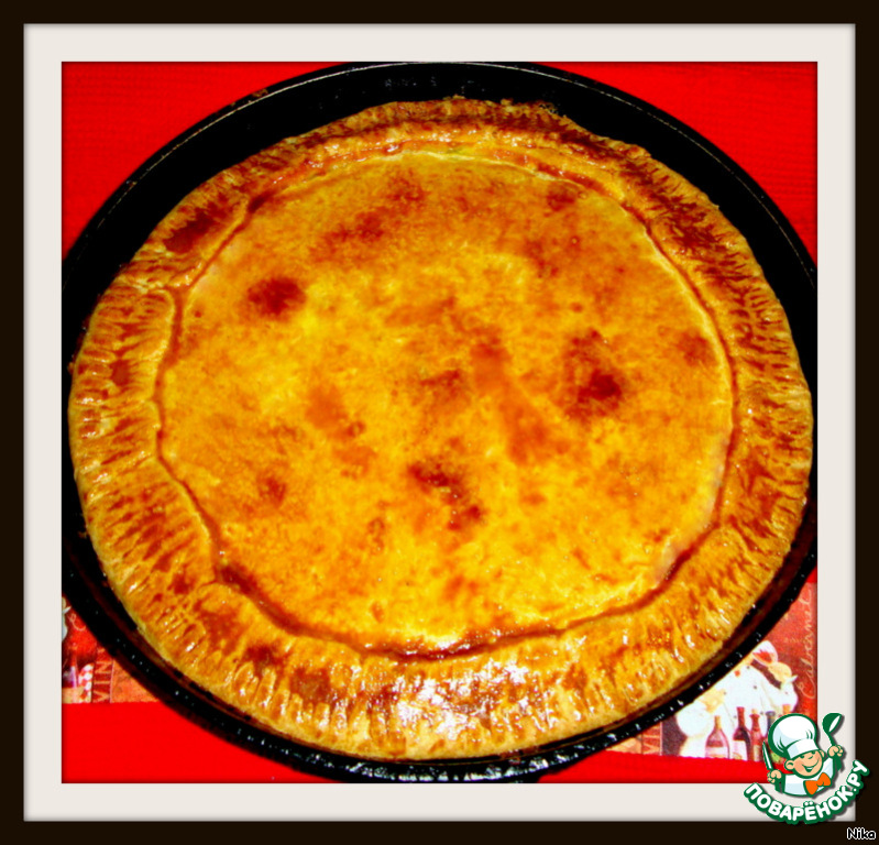 | В выходные включила телевизор программу "Вкусы мира", ведущей была Илона Броневицкая, где я и увидела приготовление этого пирога. Мне понравился простой рецепт и начинка. Совсем немного, кое-что изменила в рецепте. Качество фото неважные. Фотоаппарат плохо открывается. Фотографировала утром и вечером, разницы нет. |