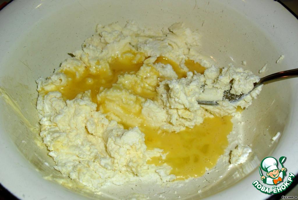 В миске размять творожок (если он зернистый, протрите через сито). Добавить сахар, соль, размешиваем)