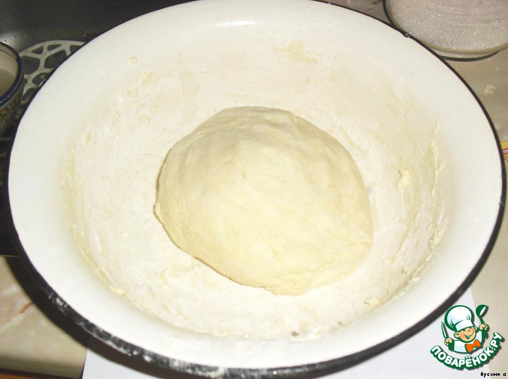 присыпаем стол мукой, выкладываем получившуюся массу и замешиваем мягкое тесто, накрываем и пока убираем в сторонку.