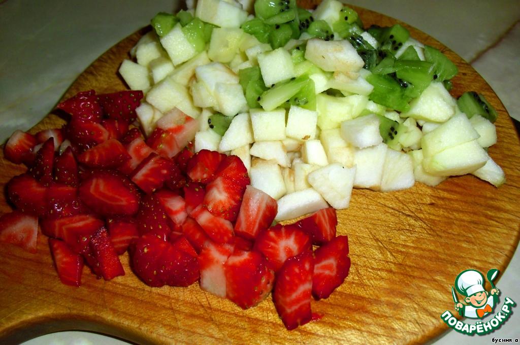 Готовим начинку, как и в одном из прошлых рецептов (блинчиков), только сегодня ещё прибавилась клубничка - можно приготовить совершенно любую, на ваш вкус.