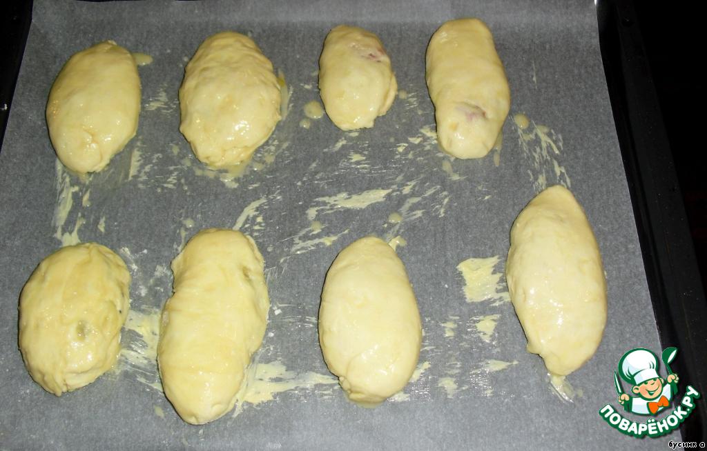 Выкладываем их на противень. Слепила я, конечно, неважнецки, буду тренироваться, но зато вкусные получились))))