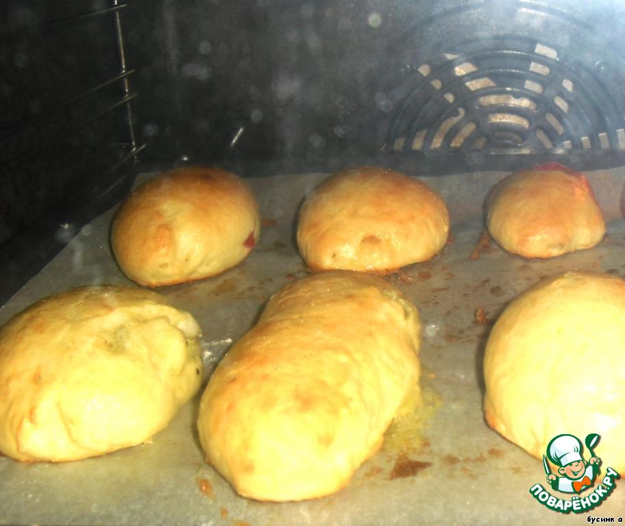 Вот они в духовочке поднялись, выпекаем до золотистой корочки при 200 градусах, у меня минут за 25-30 испеклись.