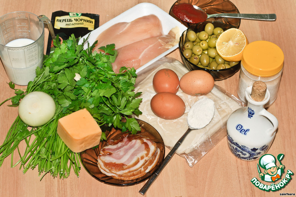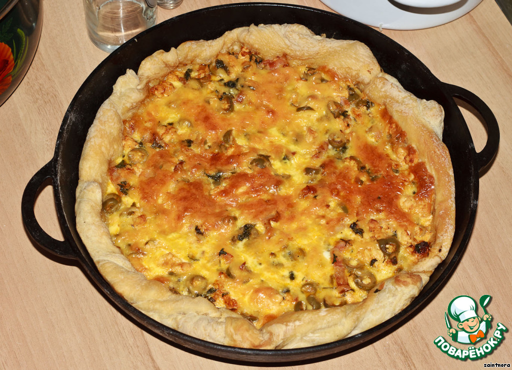 | Очень вкусненький пирог с беконом, курицей и оливками. И готовится просто! |