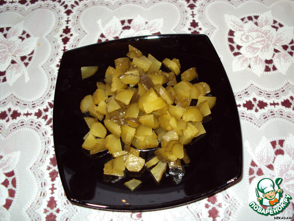 Выложить оставшийся сыр и сверху на него - огурчики.