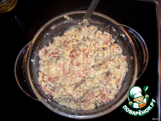 Ну и, ясное дело, всe пригорело, а мне нужен был этот пласт целиком. Ну вот я стою и гляжу на полученные куски, а сырки уже натeрты - ну не выбрасывать же всe! Короче говоря, так всe и вышло, притом вышло очень вкусно!