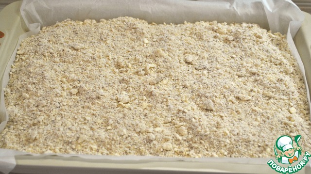 13) Обсыпаем пирог и отправляем в духовку разогретую до 180*С на 35 минут.