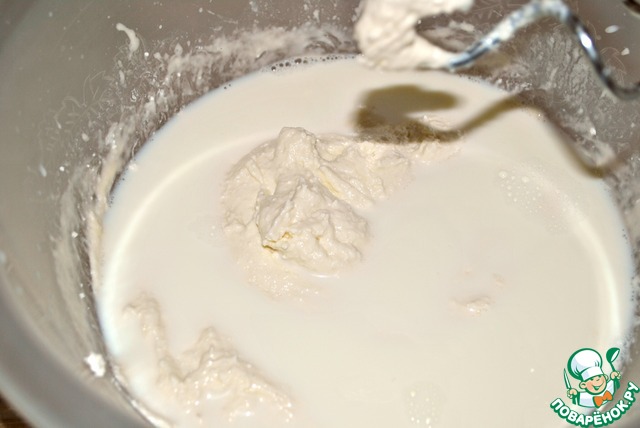 1) С утра обновляем закваску, а вечером делаем тесто: берем закваску, добавляем 50 мл. молока и хорошенько размешиваем. На фото закваска без молока.