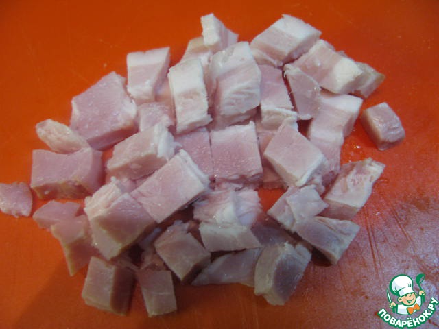 Бекон порезать кубиками.