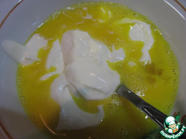 Яйца взбить венчиком.