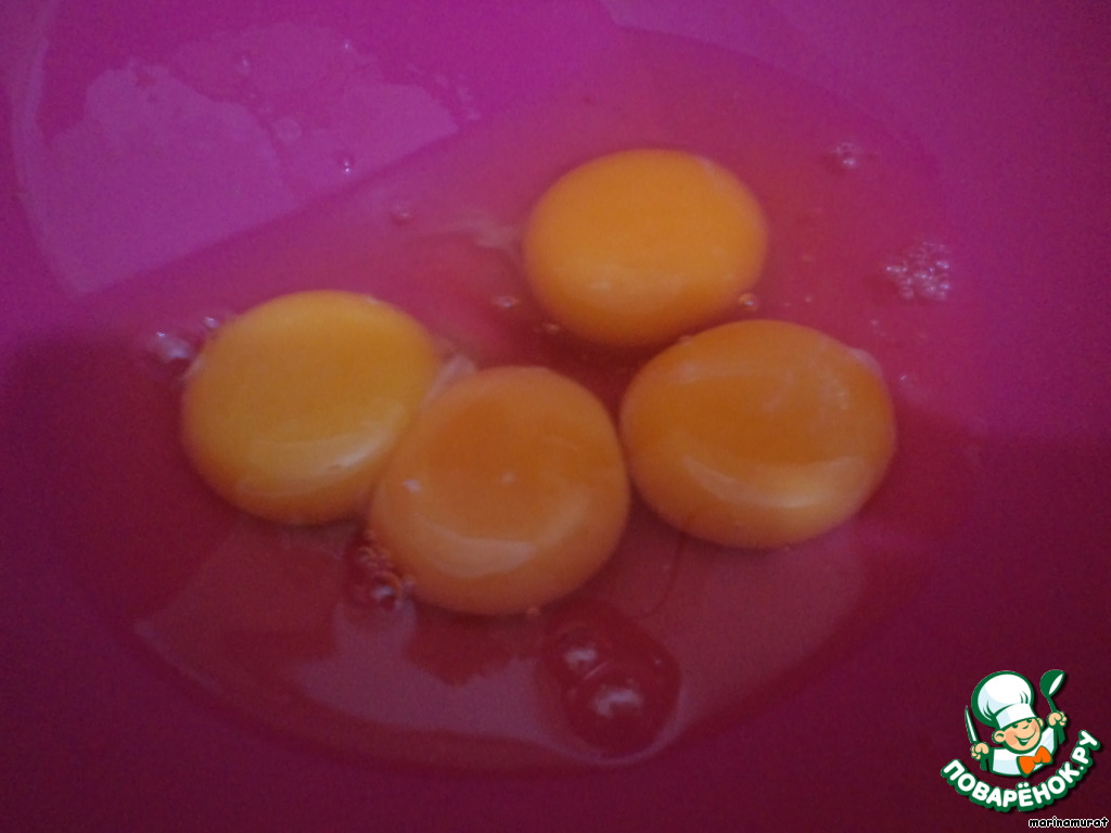 В глубокую посуду кладем 2 яйца и 2 желтка,