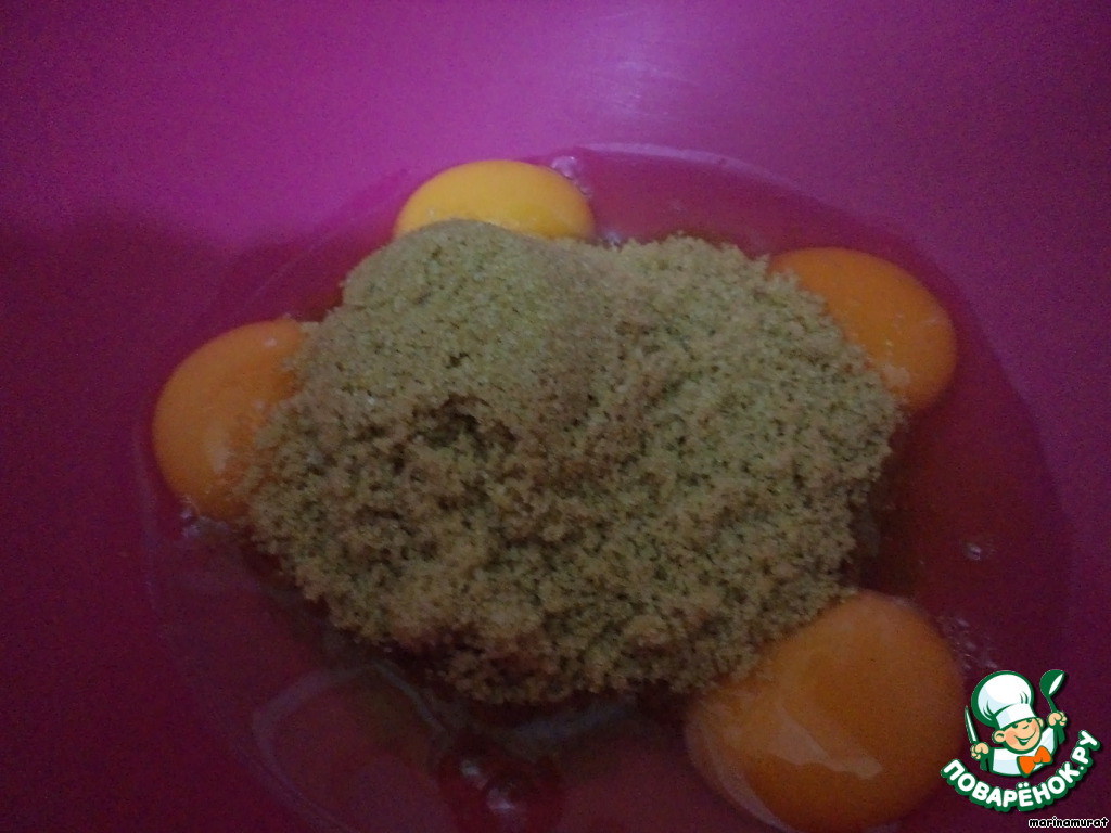 коричневый сахар, и взбиваем миксером до тех пор, пока масса не изменит цвет, и не увеличится в объеме.