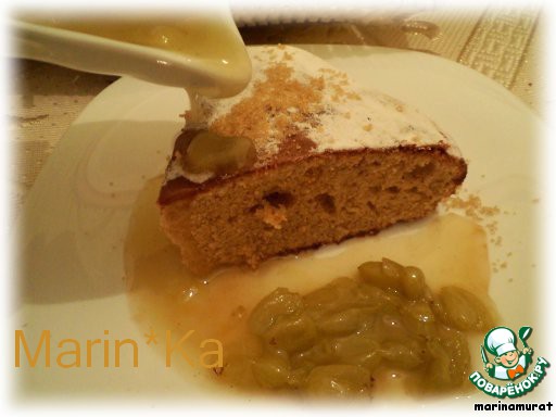 В отдельной посуде смешиваем крахмал с 1 ст.л. кипятка и отправляем к винограду. При постояном помешивании варим соус до легкой густоты. Снимаем с огня. Подаем с аппетитным, пряным, нежным кусочком пирога. Важно не класть много сахара в соус, что б сохранилась некая кислинка, которая прекрасно оттенит сладко-пряный вкус пирога.