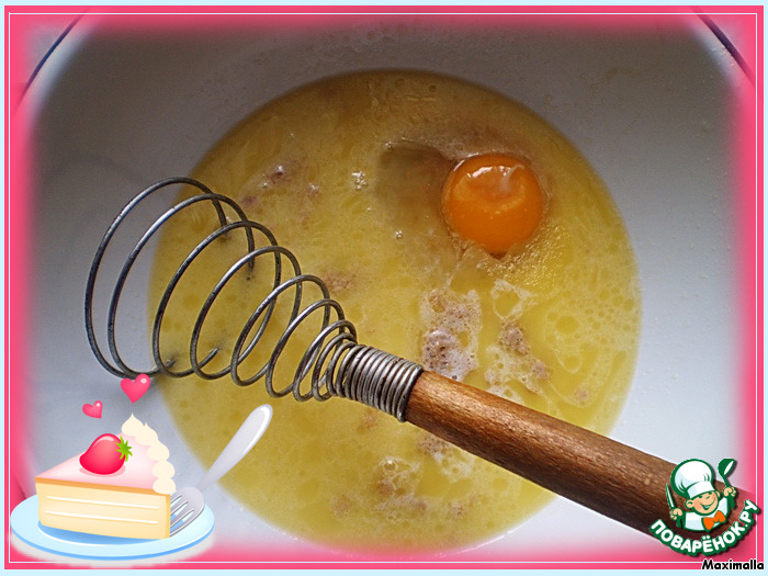 Молоко немножко охладить и вбить туда яйцо, добавить дрожжевую смесь, размешать венчиком.