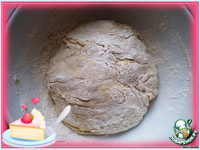Всыпая понемногу просеянную муку, замесить мягкое тесто, которое не липнет к рукам. Накрыть его полотенцем и поставить в теплое место на 1 час.