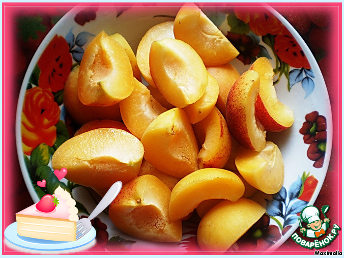 В это время можно приготовить начинку. Абрикос промыть, разрезать на 4 дольки.