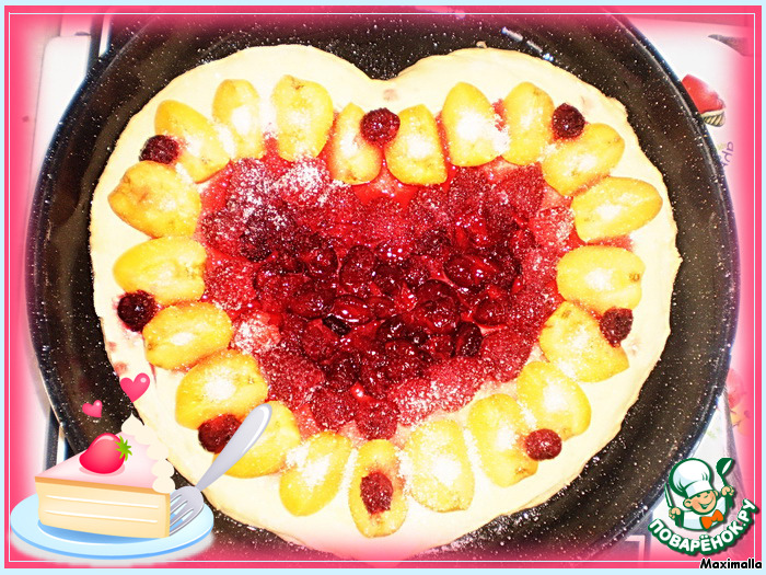 | Больше всего люблю дрожжевые пироги - мягкое, тающее во рту, пышное дрожжевое тесто, сладенькая, очень ароматная фруктово-ягодная начинка... Этот пирог в форме сердца я приготовила мужу на нашу годовщину свадьбы! |