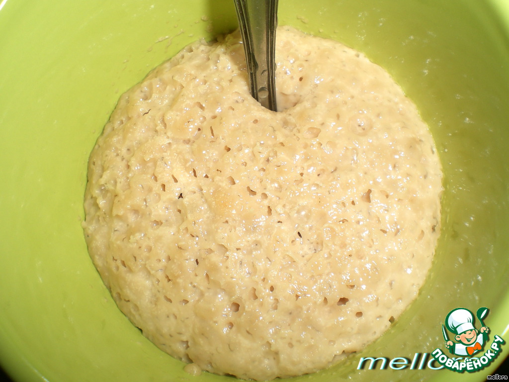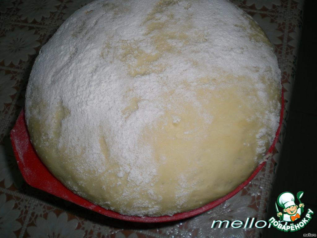 В небольшом количестве воды и 2 чайных ложках сахара развести дрожжи. Дать подняться.