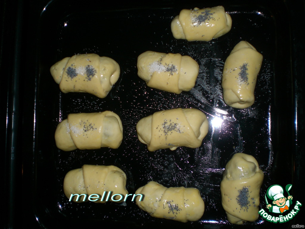 Перед выпечкой каждый пирожок смазываю яйцом и посыпаю сахаром и маком.