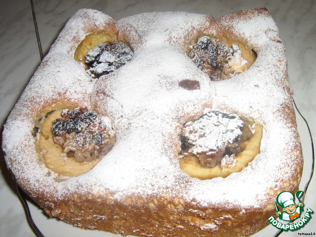 Готовый остывший пирог посыпать сахарной пудрой. Приятного чае-кофепития!