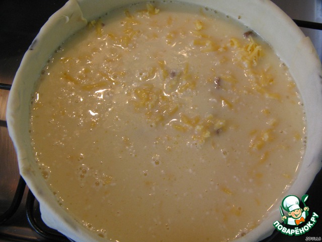 Полученную омлетную смесь вылить на ливерный фарш и сыр.