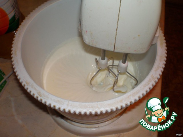 Готовим крем. Я сделала сметанный: 450 г сметаны, 120 г сахарной пудры и немного желатина. Масляный же крем готовится так: масло взбить до получения однородной воздушной массы. Продолжая взбивать, постепенно ввести сахарную пудру, ванилин. Все, крем готов. Кремом смазать один корж, сверху уложить второй. Дать немного настояться. Угощайтесь.