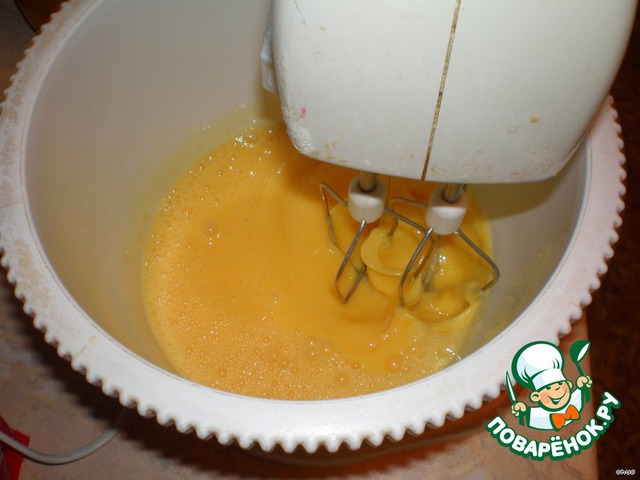 Готовим тесто. Взбить яйца с сахаром, постепенно добавить размягченное масло, муку (я половину муки заменила цельнозерновой), молоко. Замесить тесто.