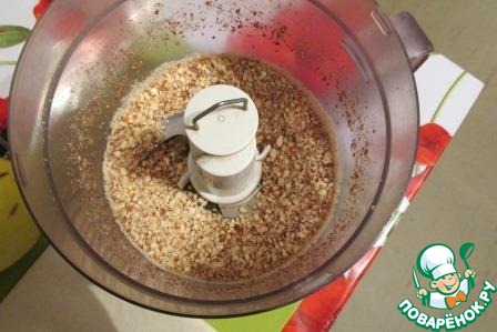 Миндаль измельчаем в довольно мелкую крошку, размером с зерно гречки.