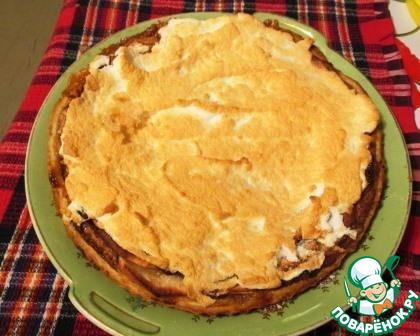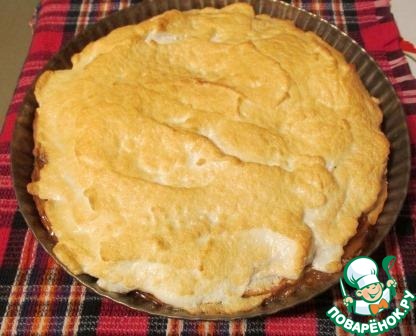 Аккуратно вынимаем горячий пирог из духовки и покрываем взбитыми белками.
