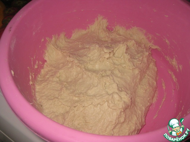 Добавляю муки, что б тесто было мягким. Ставлю на 1 час, что б подошло.