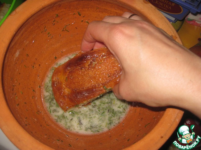 Складываем готовые пирожки в миску, накрываем, что бы пропитались ароматом чеснока и укропа и кушаем с удовольствием!!! В соус, который остался можно кушать вприкуску с пирожками, если вы любите острое.