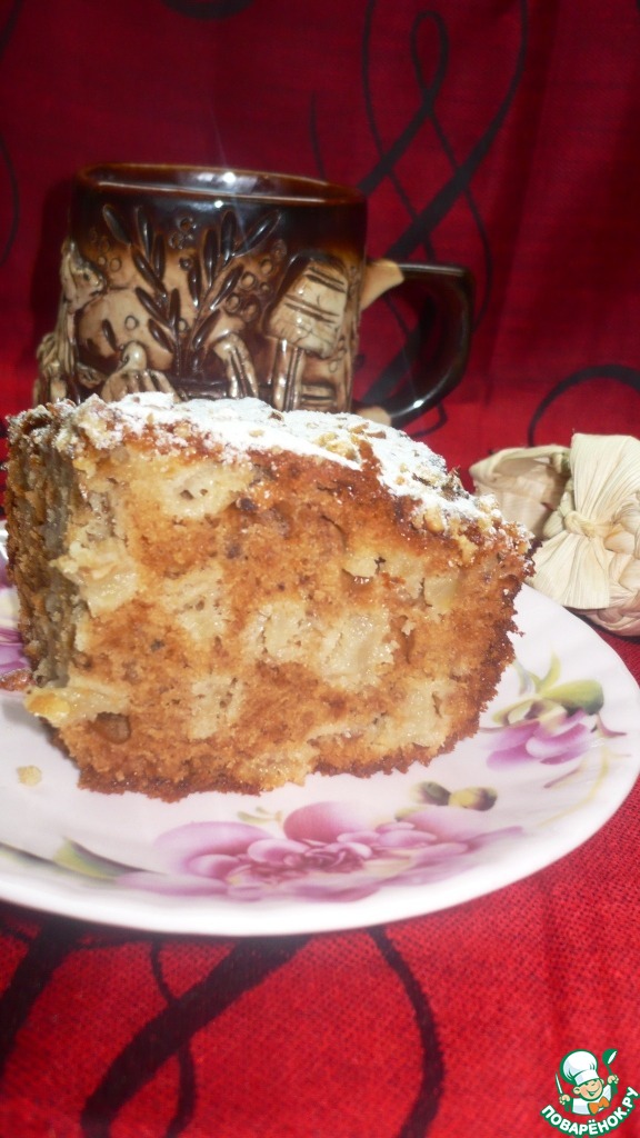 Дать остыть пирогу в форме, затем вынуть, присыпать сахарной пудрой и наслаждаться с молоком или чаем!
