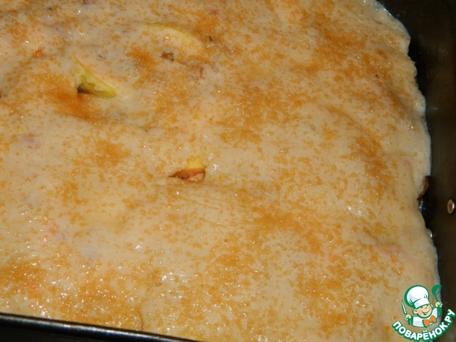P.S. - форма у меня хоть и разъемная, но с бортиками на дне. У круглой формы таких нет, поэтому под форму советую положить лист бумаги для выпечки, чтобы, тот немногий, сок от яблок не капал на дно духовки.